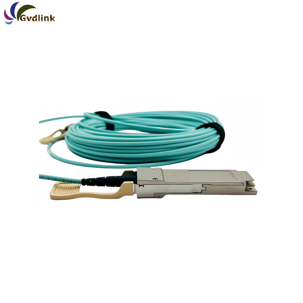 The Mellanox compatible MFS1S00-VxxxE/ MFS1S00-HxxxE is a QSFP56 VCSEL-based (Vertical Cavity Surface-Emitting Laser) active optical cable (AOC) designed for use in 200Gb/s Ethernet systems. MFS1S00-VxxxE AOC offers high port density and configurability, and a much longer reach than passive copper cables in the data centers. Since the AOC is hot pluggable, it is easy to install and replace. MFS1S00-VxxxE has a standard SFF-8665 compliant QSFP56 port on the electrical side towards the host system. It contains four multi-mode fibers (MMF) optic transceivers per end, each operating at data rates of up to 50Gb/s. MFS1S00-VxxxE offers selectable retiming per lane for both its optical transmitters and receivers up to 50Gbp/s rates