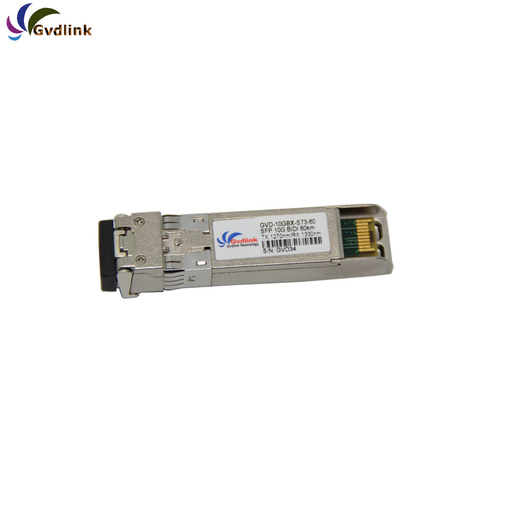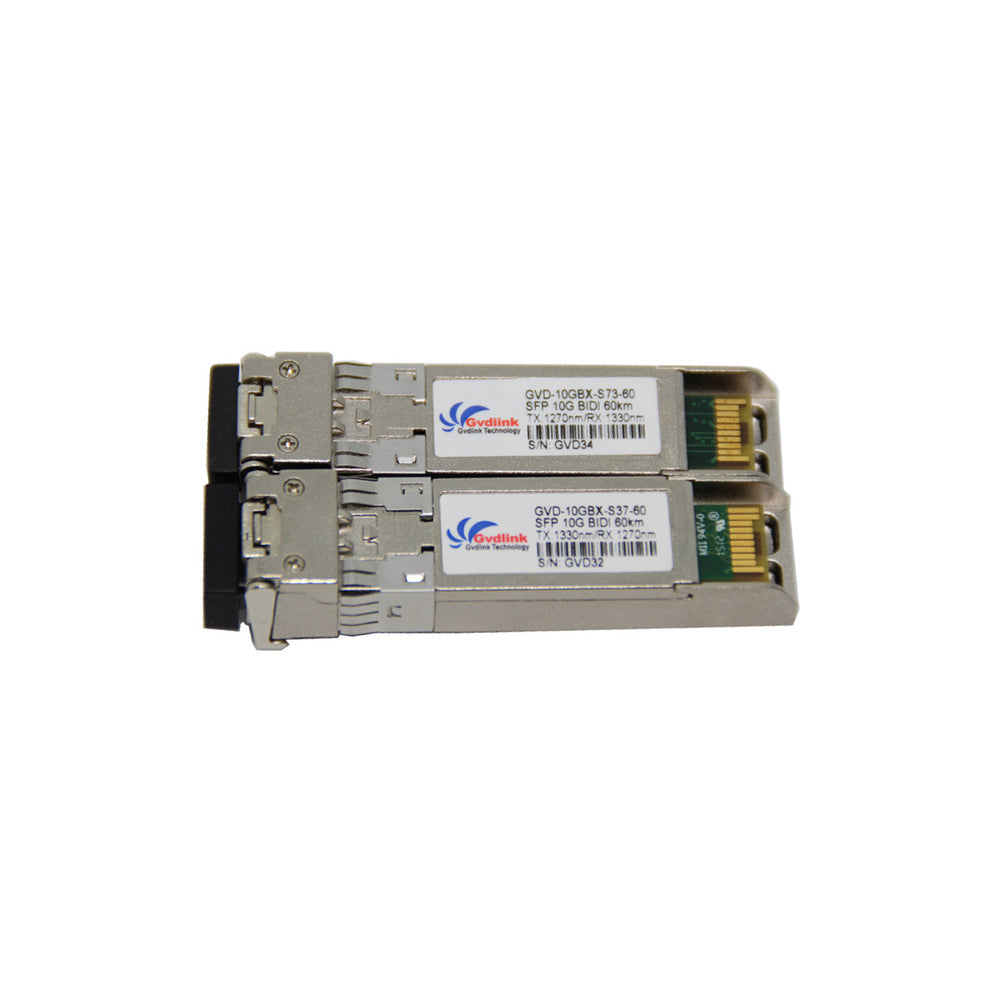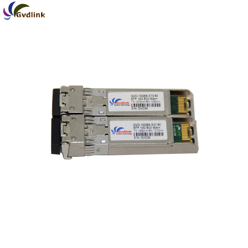 The SFP-10G-BX60U-I Cisco compatible SFP+ transceiver supports up to 60km link lengths over SMF via a simplex LC connector. This 10G BiDi SFP+ transceiver, featured with data transmission over a single strand of fiber, the one transceiver transmits a 1270-nm channel and receives a 1330-nm signal, whereas the other BiDi SFP+ optics transmits at a 1330-nm wavelength and receives a 1270-nm signal.