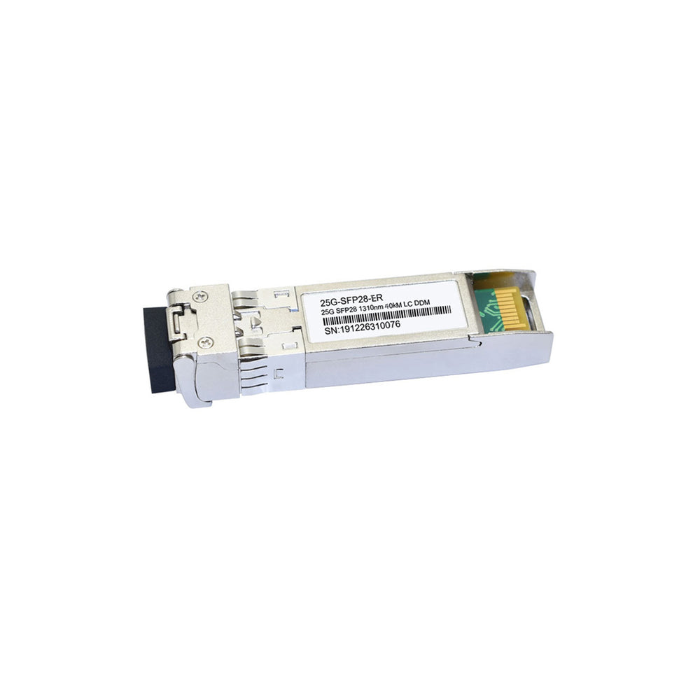 The Cisco SFP-25G-ER-I compatible SFP28 transceiver provides 25GBase-ER throughput up to 30km over single mode fiber (SMF) using a wavelength of 1310nm via an LC duplex connector. Featuring low power consumption, high speed, this 25G transceiver is ideal for 25G Ethernet, and data center, suitable for both outdoor and indoor deployments. It is fully compliant with the SFP28 MSA, CPRI and eCPRI standard.
