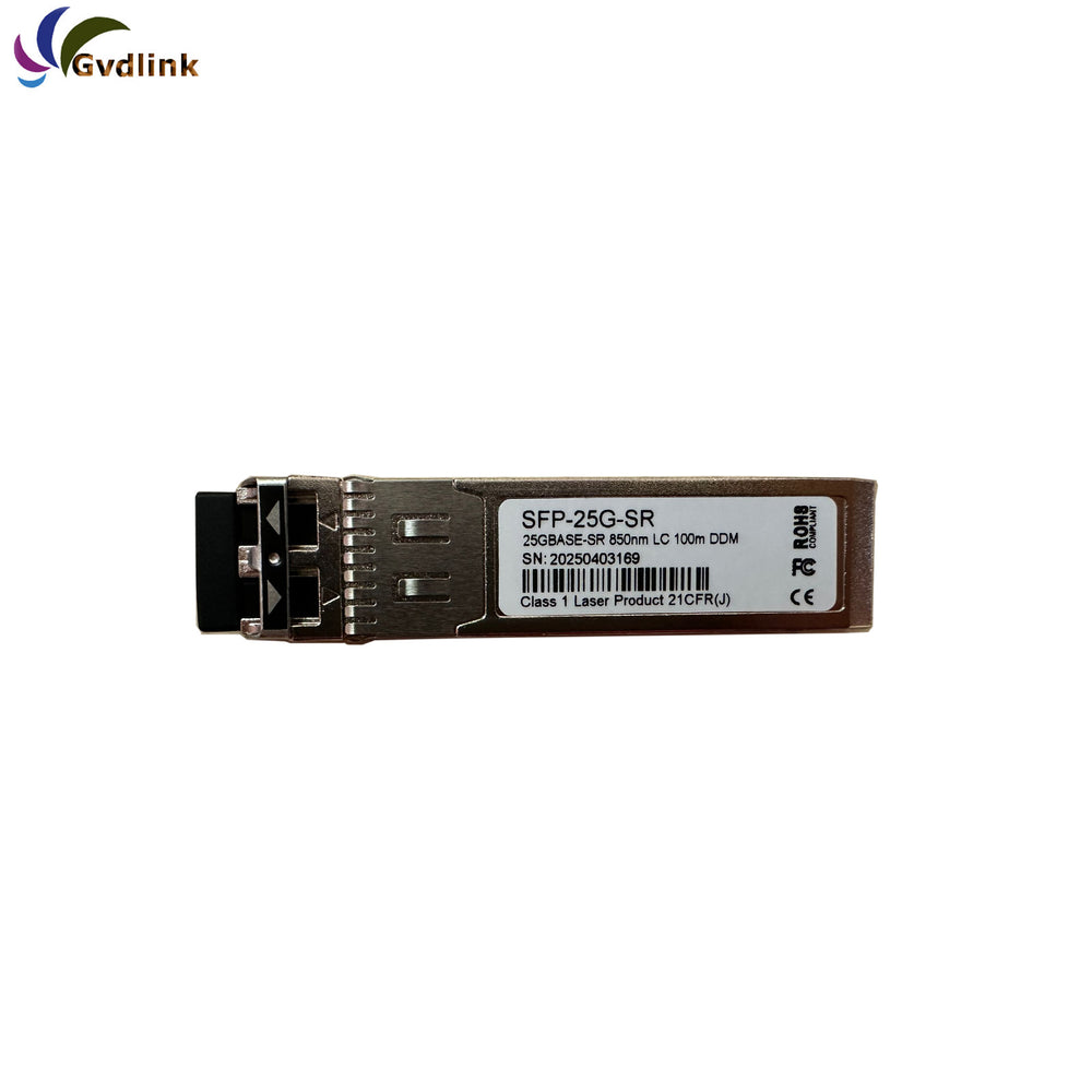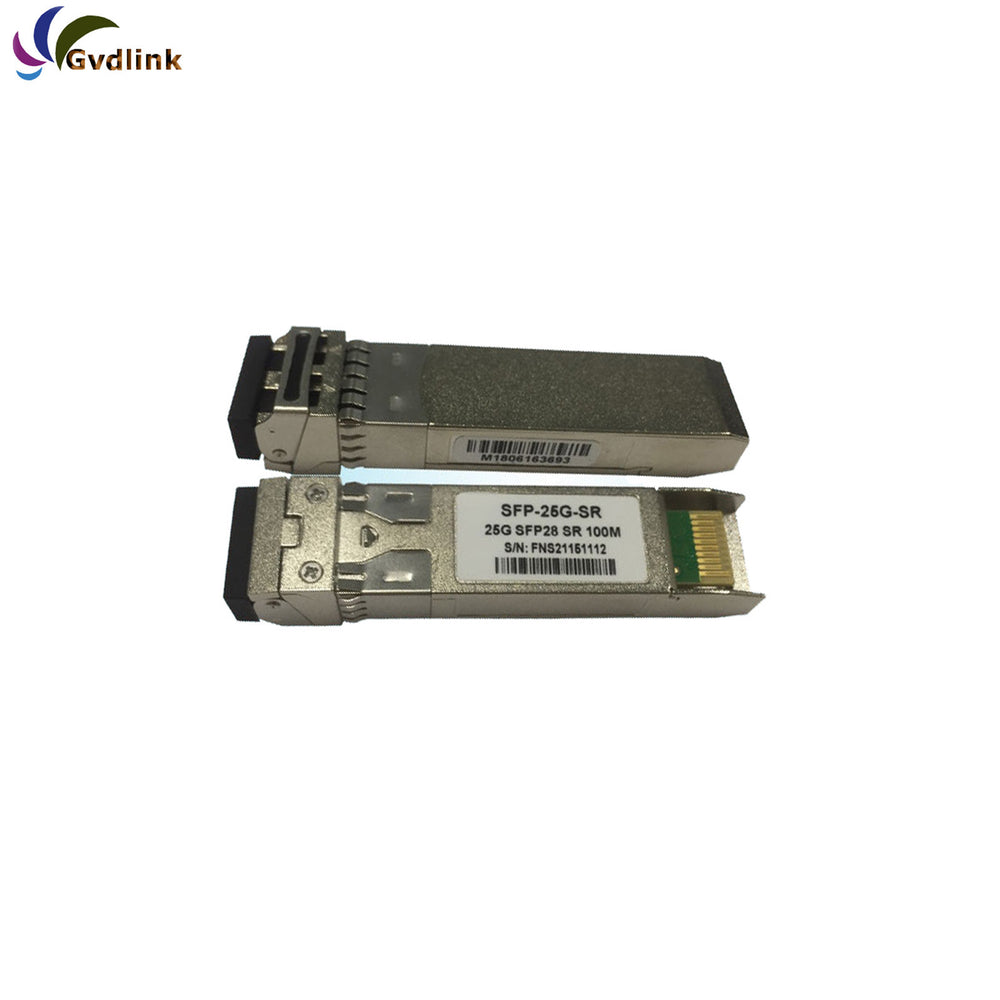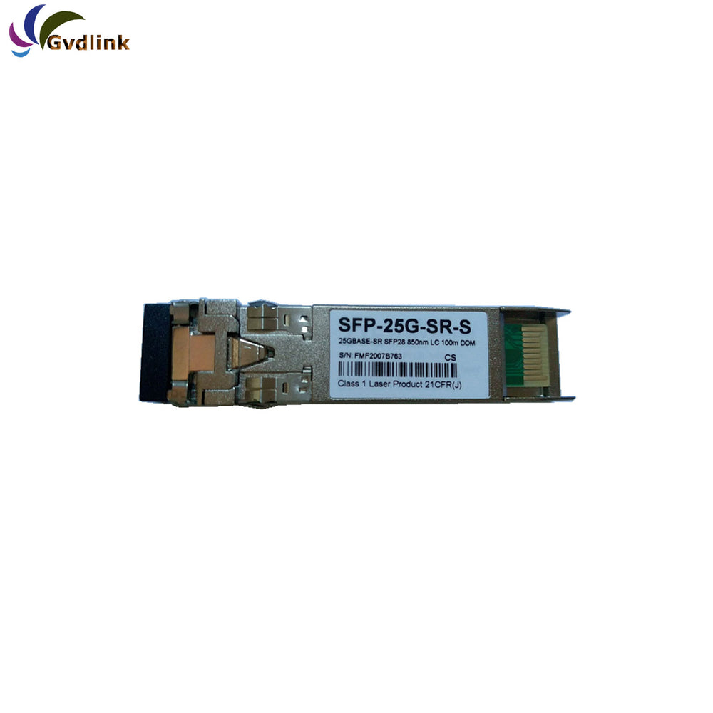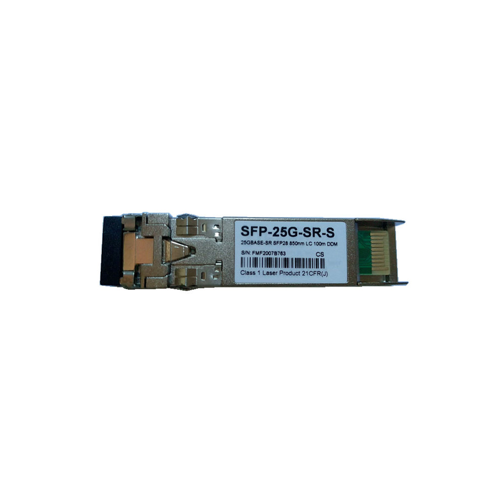 Cisco SFP-25G-SR-S compatible SFP28 transceiver adopts LC duplex connectors, reaching a link up to 100m over OM4 MMF (70m over OM3). The SFP28 transceiver module supports running on the same 1G/10G network cabling Infrastructure, giving 2.5 times increase in speed at least, and the built-in DDM/DOM functions monitor the real-time operating status. This hot-swappable transceiver is pre-programmed, uniquely serialized, and tested for data traffic and application performance. Besides, it offers interoperability, laying a foundation for the next-generation network upgrade. Each SFP28 transceiver module is individually tested on a series of Cisco switches, and is fully compliant with the SFP28 MSA, RoHS, CPRI, and the eCPRI standards. Featuring low power consumption, high speed, this 25G transceiver is ideal for 25G Ethernet, telecom, and data center.